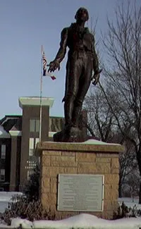 After its arrival in Emmetsburg, a disagreement arose as where it should be erected. It was stored in the basement of a local grocery store until a decision could be reached. Time passed and Emmet was almost forgotten, until the grocer sold the statue to a group of Hibernians in Minnesota. There it was destined to stand in the backyard of a private home, until one night in 1958, it was quietly stolen away and brought back to the home it was intended to be and to the spot that was reserved by the Supervisors, many years ago, in the courthouse square.
